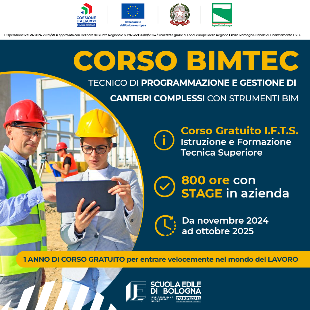 BIMTEC – TECNICO DI PROGRAMMAZIONE E GESTIONE DI CANTIERI COMPLESSI CON STRUMENTI BIM