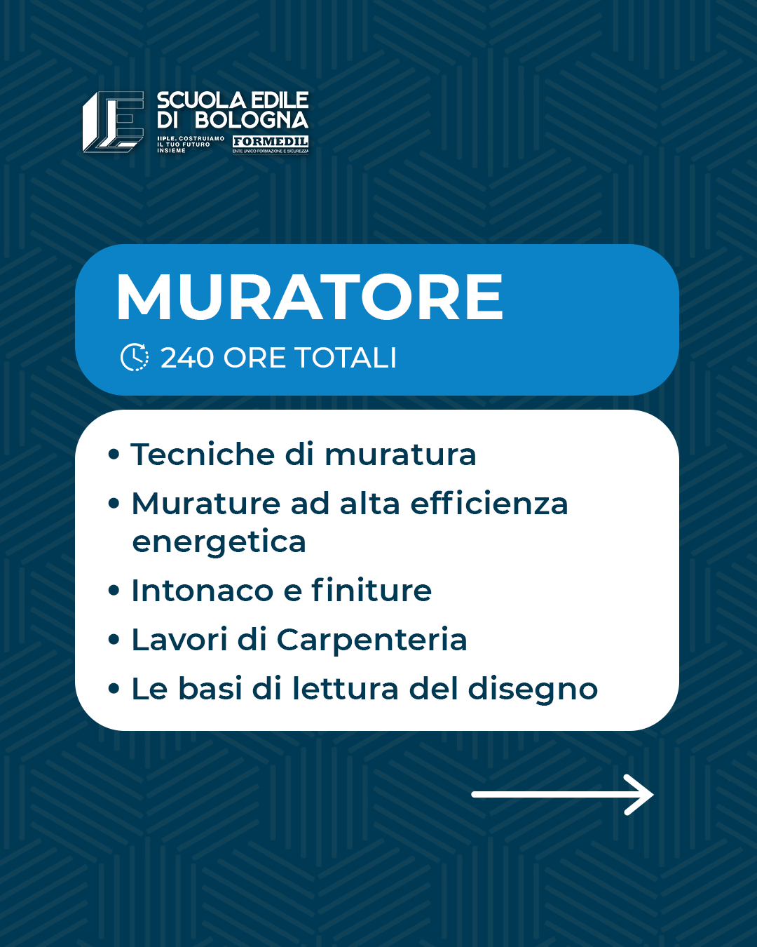 Essere in grado di realizzare tracciamenti, eseguire il dosaggio e l’impasto delle malte, costruire a regola d’arte murature, archi e forme particolari nel rispetto delle norme di sicurezza.